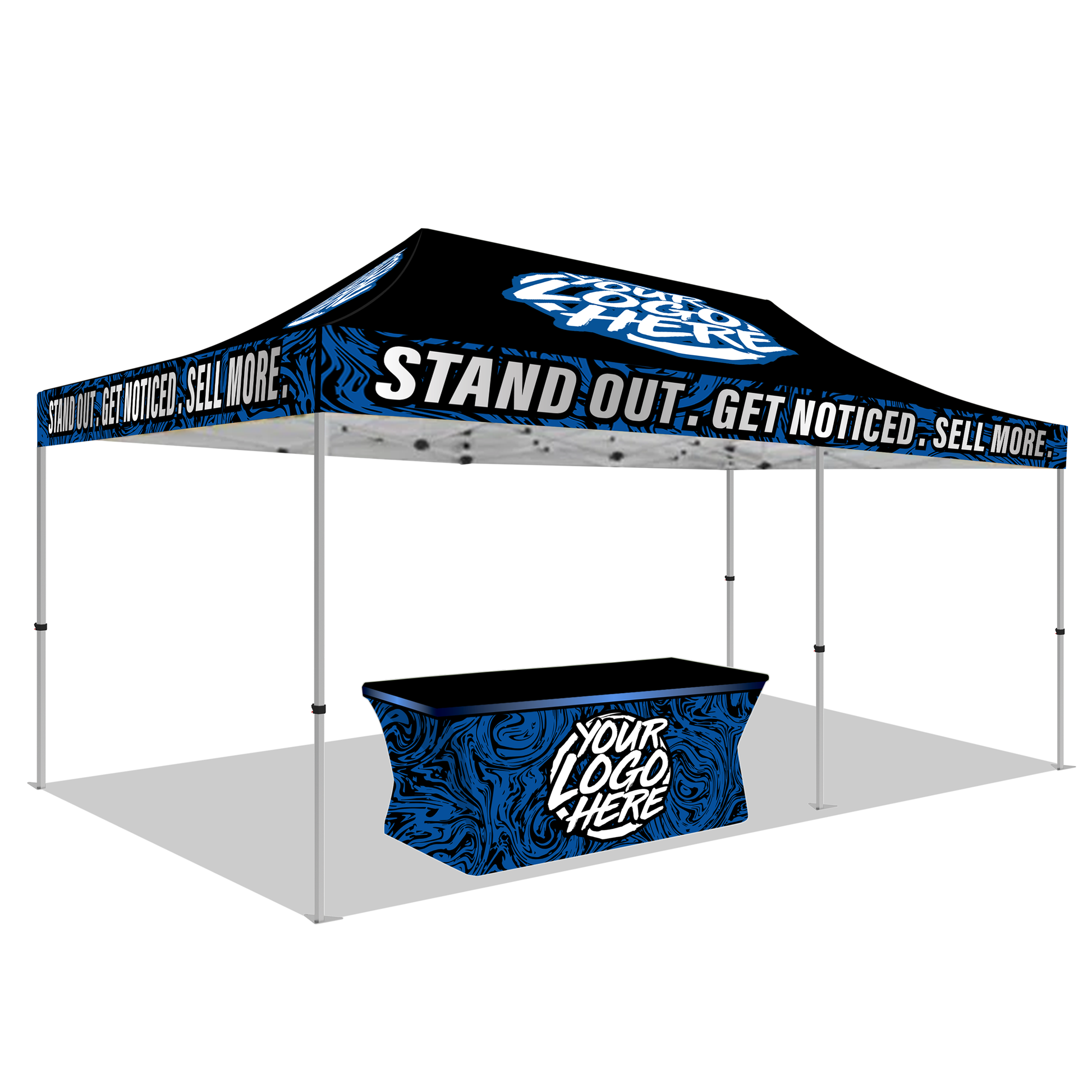 Our 10' x 20' Custom Canopy Kit #4 provides an eye catching Custom Pop-Up Canopy Tent along with a Stretch Style Table Cover which helps you SIGNIFICANTLY stand out among the competition! The level of customization is endless with our Custom Booth Setups here at STX Promo where we strive to bring your Custom Canopy ideas to life to help YOU promote your Brand or Business.