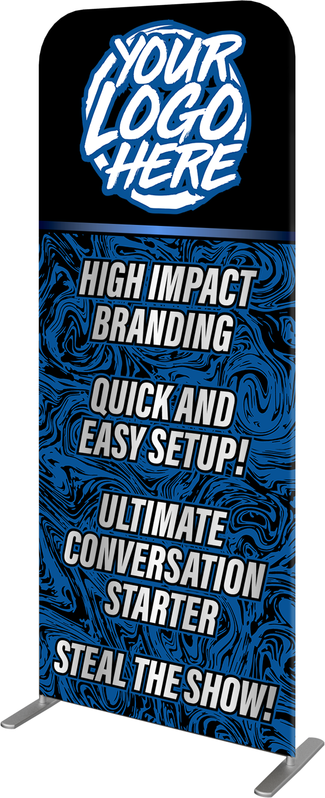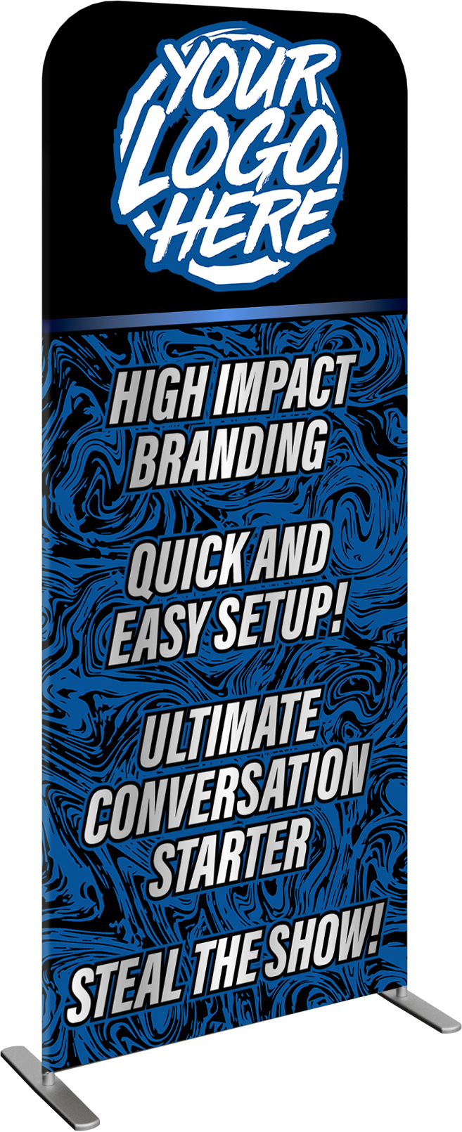 Absolutely. You can choose a Single-Sided graphic (with a white or black backer) or upgrade to a Double-Sided graphic. Double-sided printing is highly recommended for trade show aisles or open spaces where traffic comes from multiple directions, doubling your brand's exposure.