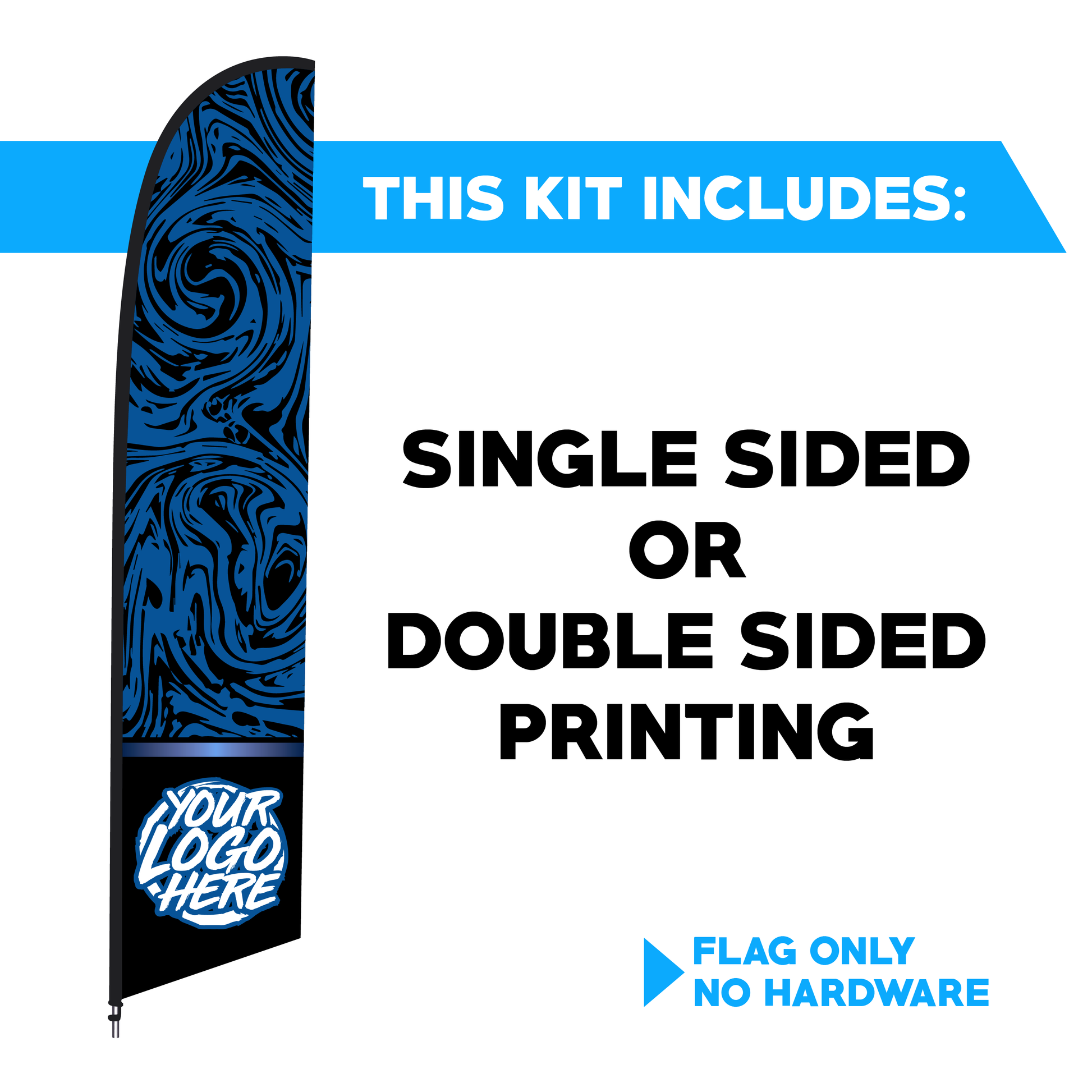 - Single sided printing for flags means that only one side of the flag will be printed. The backside of the flag won't be blank though like single sided walls. You will be able to see the print on both sides of the flag. Just keep in mind that on one side of the flag the design will typically be "backwards" or "mirrored".