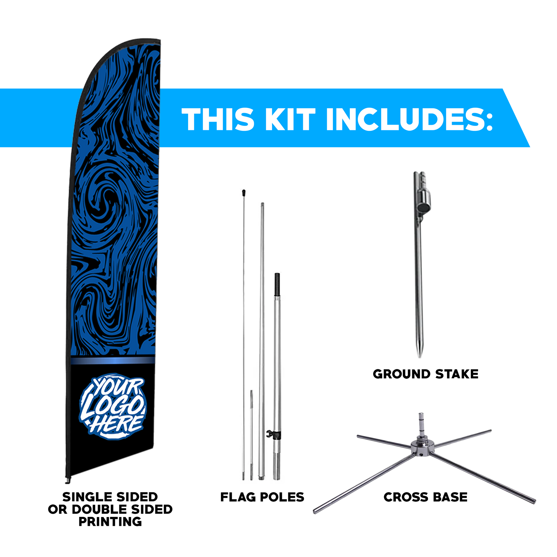 - The flag cross base comes in handy for any indoor setups or outdoors as well. We suggest securing the cross base with one of our water bags or you can also use some ground stakes to secure it to the ground.