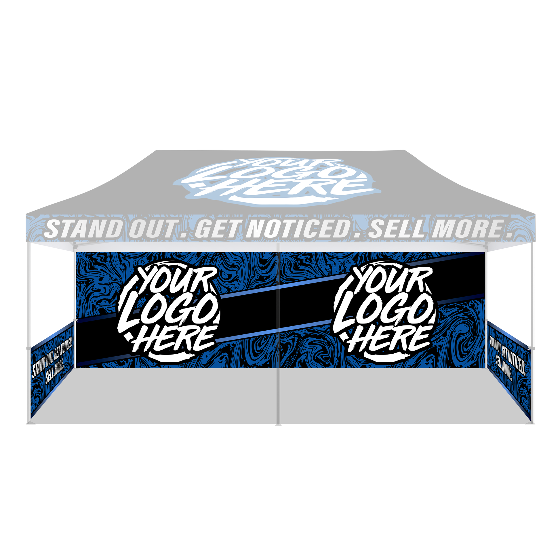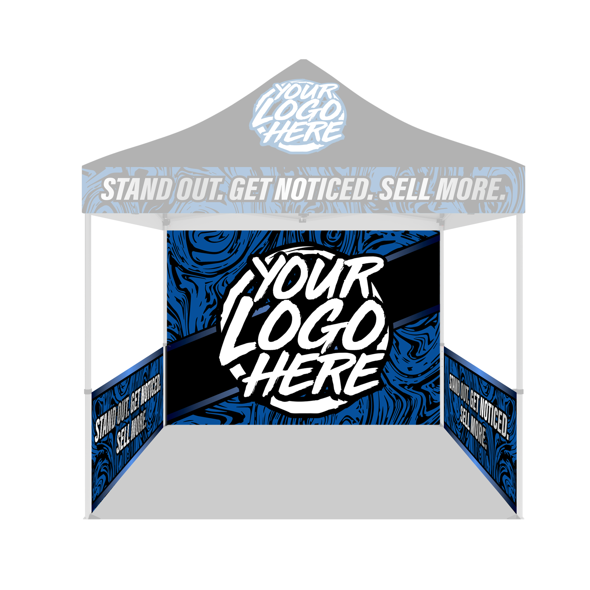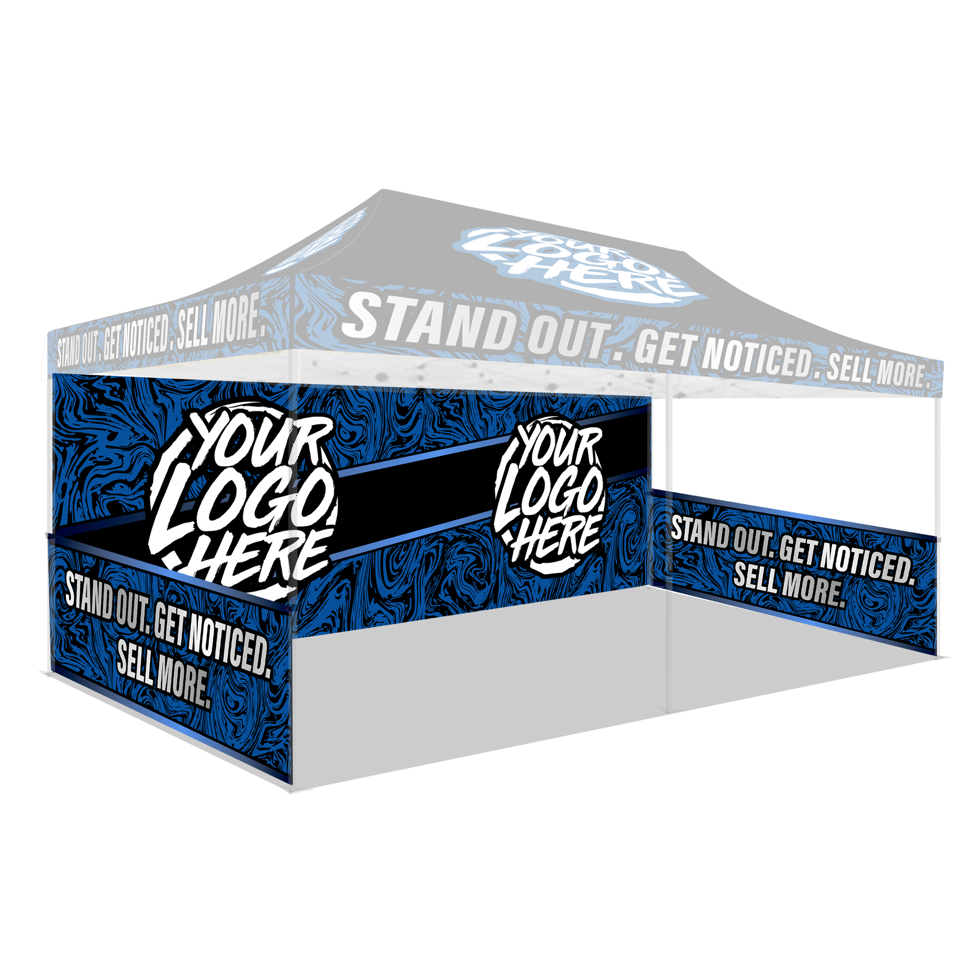 Get a nice full rear and half side wall setup that helps you SIGNIFICANTLY stand out among the competition! The level of customization is endless with our Custom Canopies here at STX Promo where we strive to bring your Custom Canopy ideas to life to help YOU promote your Brand or Business.