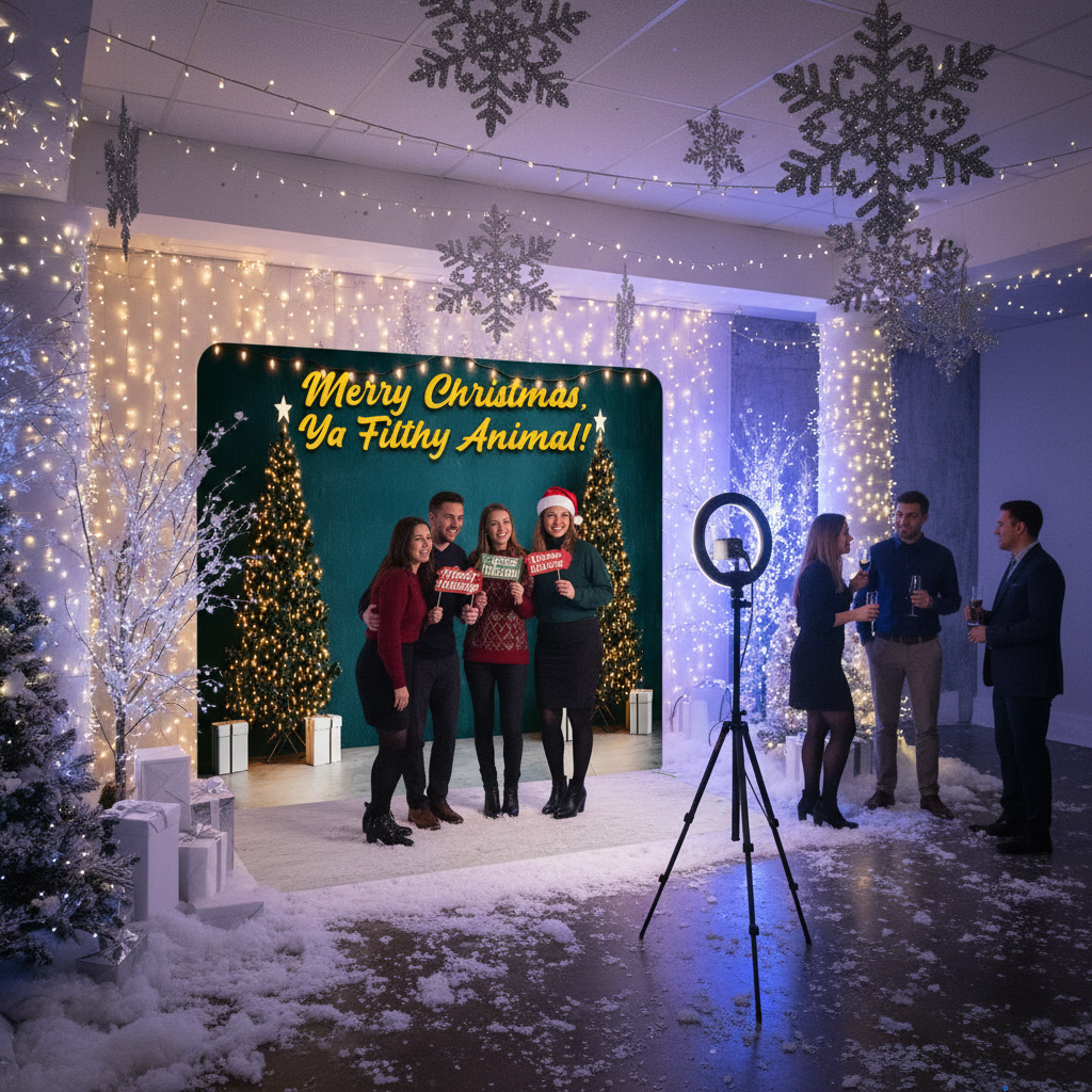 Forget about wrinkled vinyl banners or flimsy plastic sheets that glare when you take a photo. This is a professional-grade Tension Fabric Display—the same premium quality we supply for top-tier trade shows, reimagined for the holiday season.