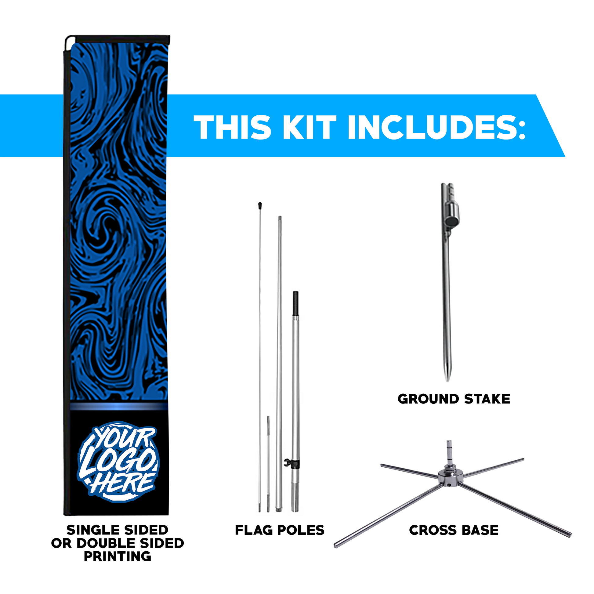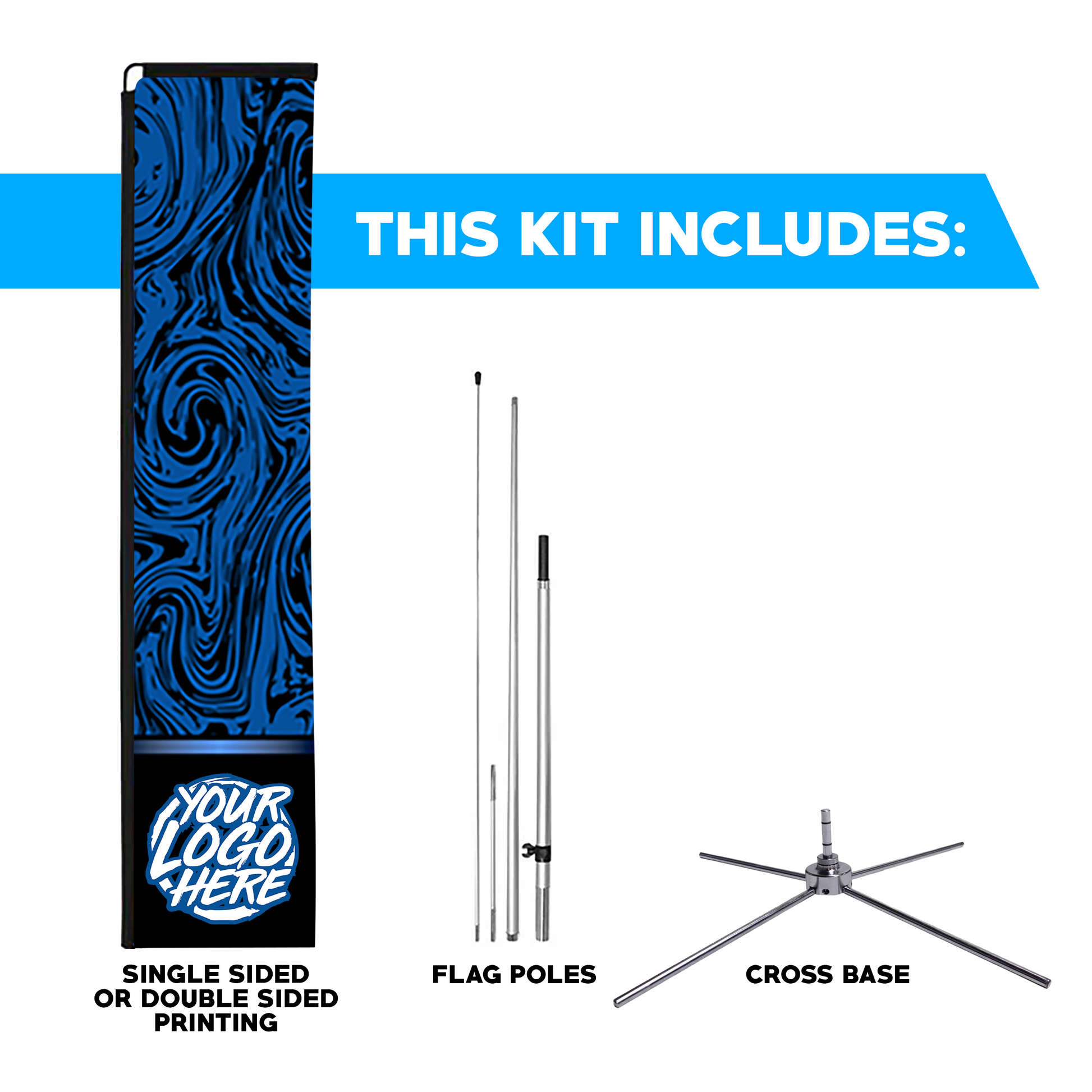- The flag cross base comes in handy for any indoor setups or outdoors as well. We suggest securing the cross base with one of our water bags or you can also use some ground stakes to secure it to the ground.