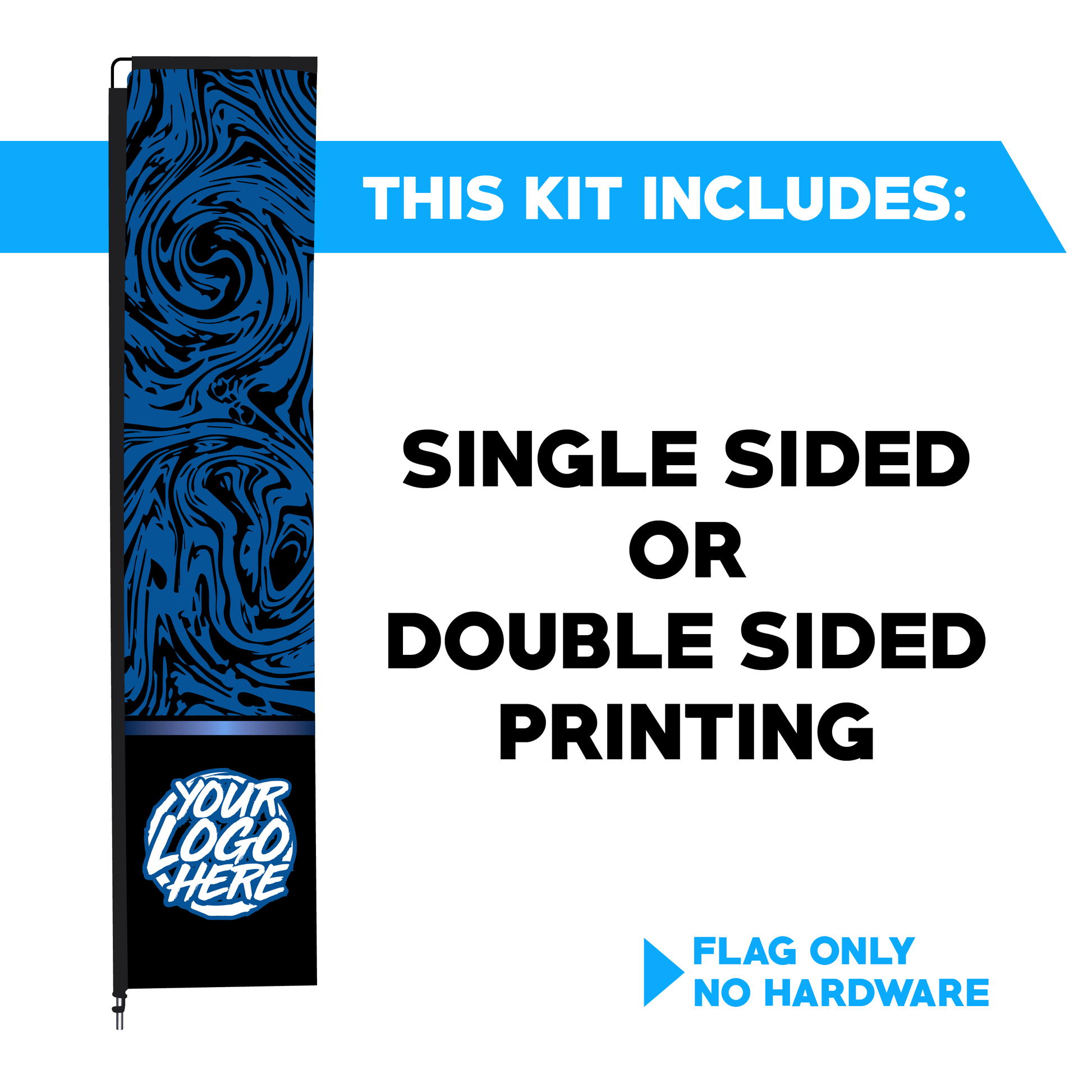 - Double sided printing is for those that either want their design to be going the correct direction on each side of the flag or for those looking to have two different designs on each side of the flag.
